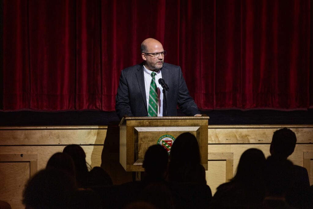 Mr. Cahoon shared a lifelong journey of finding new communities of belonging, from his school days to college and theatre companies, to his career at Pinkerton Academy where his daughter and family called home for many years. He shared how he found his way to New Hampton School and the Director of Theatre role, and while here, accepted the challenge of becoming Academic Dean. Each step had a purpose and was in thanks to remaining open and curious and asking questions of himself. He implored everyone to check in with themselves, to ask “now what?” and find the courage to take action on opportunities when they find their “what”.